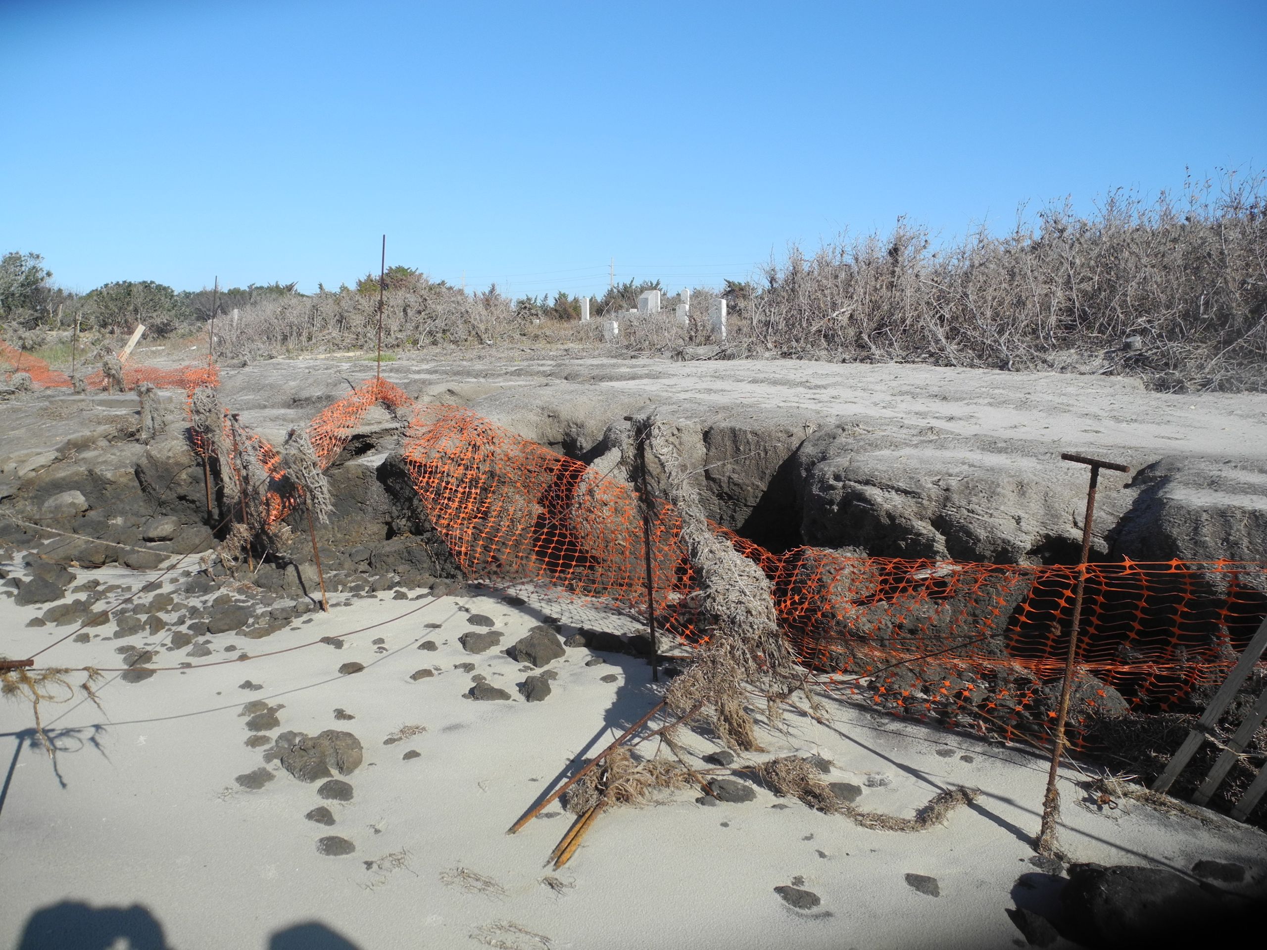 The erosion at the cemetery is representative of the problems faced on the Outer Banks. Riggs said the area was once a high sand ridge far from the sound and a major overwash plain. The beach was also naturally nourished as tides eroded the ridge into the sound, and the ocean sloshed sand across the island. But the barrier dunes have prevented the overwash, and the beach and marsh have eroded away. As the marsh disappears, he expects the erosion rates to increase. When the marsh habitat disappears so will its wildlife.